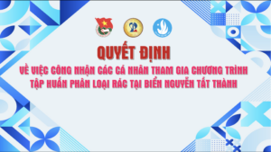 [QUYẾT ĐỊNH] Vv công nhận các cá nhân tham gia chương trình tập huấn phân loại rác tại biển Nguyễn Tất Thành