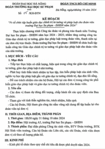 [KẾ HOẠCH] Tổ chức tập huấn giáo dục chính trị tư tưởng và pháp luật cho đoàn viên trường Đại học Sư phạm – ĐHĐN năm 2024
