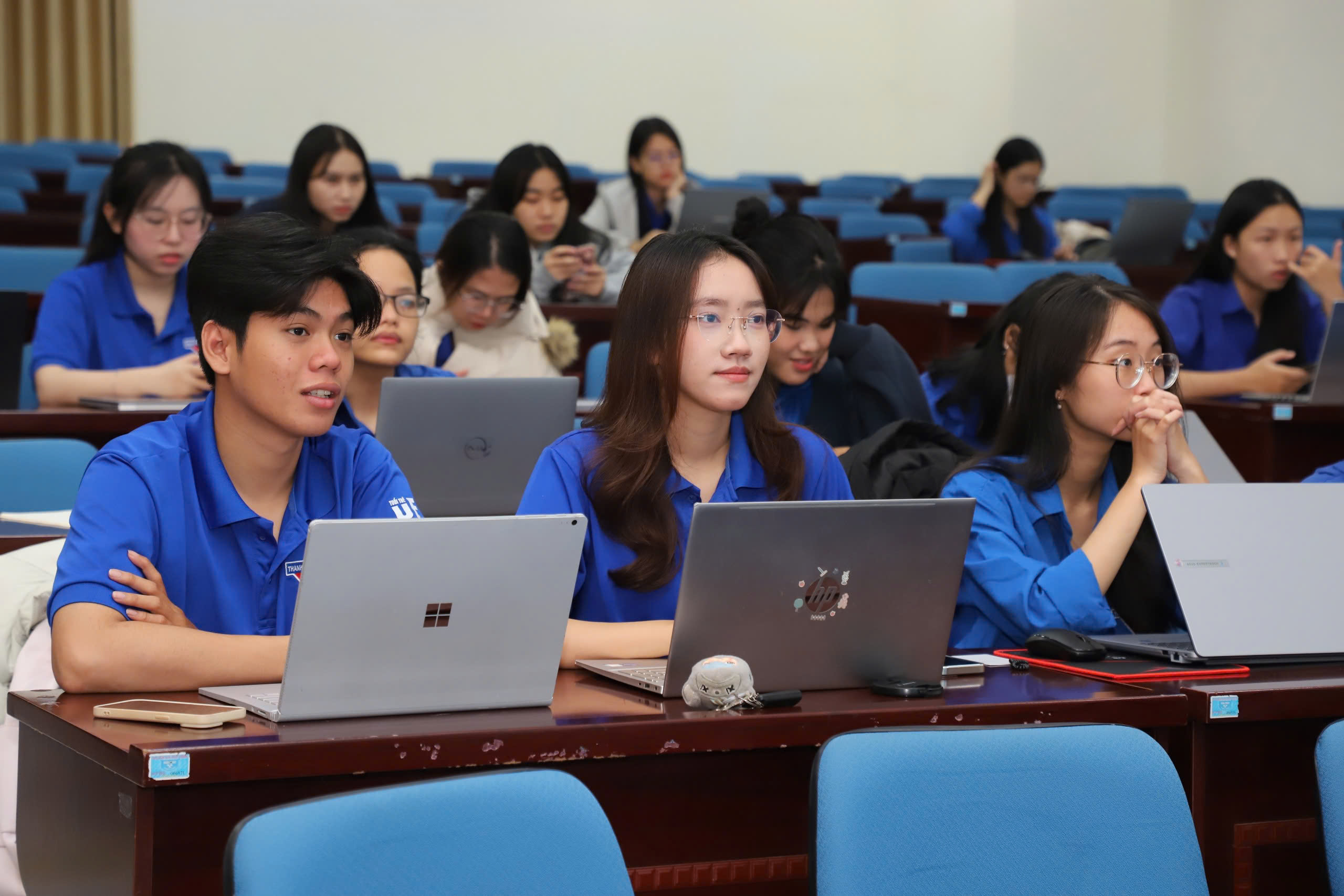 Phát biểu tại chương trình, Đ/c Đồng Thế Hưng – Phó Bí thư Đoàn trường nhấn mạnh: “Trong giai đoạn hiện nay, việc ứng dụng AI không còn chỉ là sở thích mà còn là kỹ năng bắt buộc cần thiết. Lớp học hôm nay được thiết kế theo tinh thần mini nhưng chất. Nội dung chia sẻ được chắt lọc ngắn gọn, tập trung vào những kỹ năng số thiết yếu mà sinh viên thực sự cần; bám sát nhu cầu học tập, nghiên cứu và hoạt động thực tiễn của các bạn. Điều quan trọng nhất là những kiến thức, kỹ năng trong lớp học này không dừng lại ở lý thuyết, mà hoàn toàn có thể áp dụng ngay sau buổi học.”