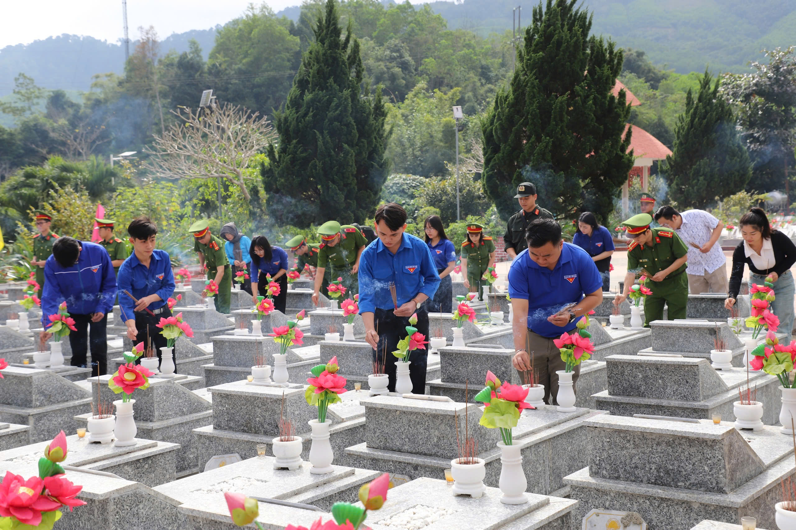 Trong khuôn khổ hoạt động, đoàn công tác đã tổ chức dâng hoa, dâng hương tại Nghĩa trang liệt sĩ huyện Đông Giang (cũ), bày tỏ lòng tri ân sâu sắc đối với các anh hùng liệt sĩ đã hy sinh vì độc lập, tự do của Tổ quốc, đồng thời giáo dục truyền thống “uống nước nhớ nguồn” cho đoàn viên, thanh niên tham gia chương trình.