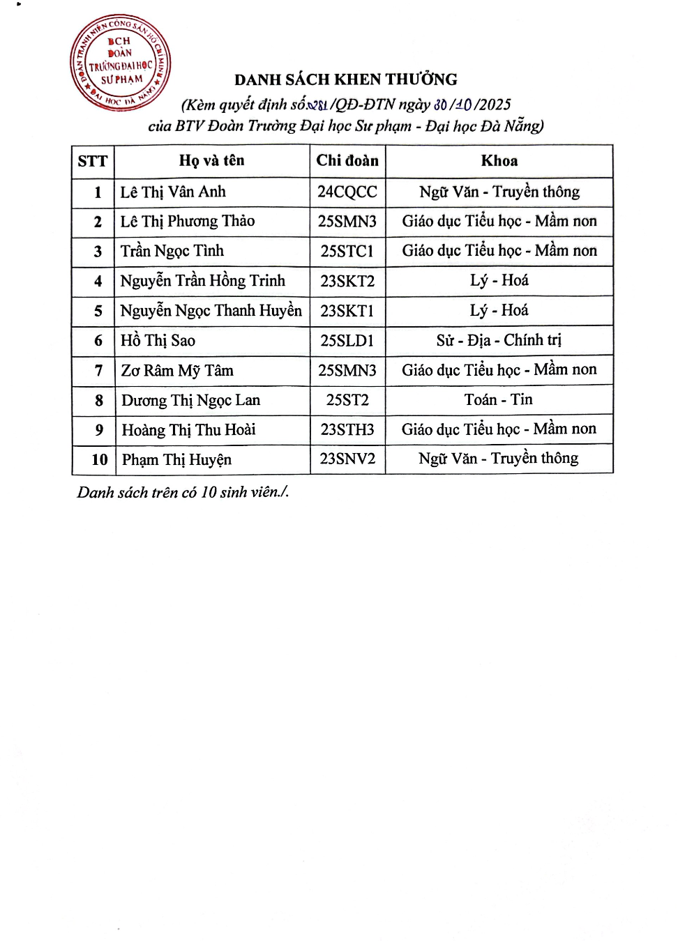 HỆ THỐNG VĂN BẢN, Đoàn Thanh niên, ĐOÀN THANH NIÊN, Quyết định[QUYẾT ĐỊNH] Vv công nhận các cá nhân là tình nguyện viên hỗ trợ Chương trình khai mạc Ngày hội Sách 2025 Đã đăng trên 21 Tháng 1, 2026 bởi uedbandoanvu Văn bản đầy đủ: TẠI ĐÂY uedbandoanvu [QUYẾT ĐỊNH] Vv công nhận các cá nhân tham gia Chương trình Nghệ thuật Khai khóa năm 2025 [QUYẾT ĐỊNH] Thành lập Câu lạc bộ Lý luận trẻ Trường Đại học Sư phạm – Đại học Đà Nẵng