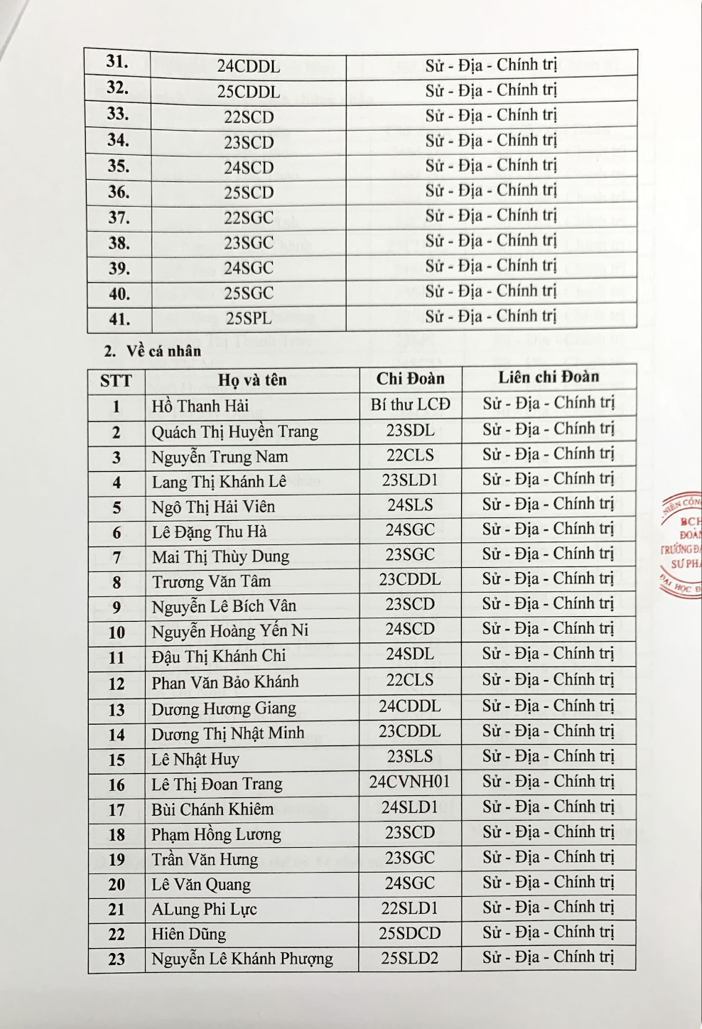 • [QUYẾT ĐỊNH] Vv khen thưởng cá nhân có thành tích xuất sắc trong công tác đoàn và phong trào thanh niên nhiệm kỳ 2023 – 2025 Liên chi đoàn Khoa Toán – Tin