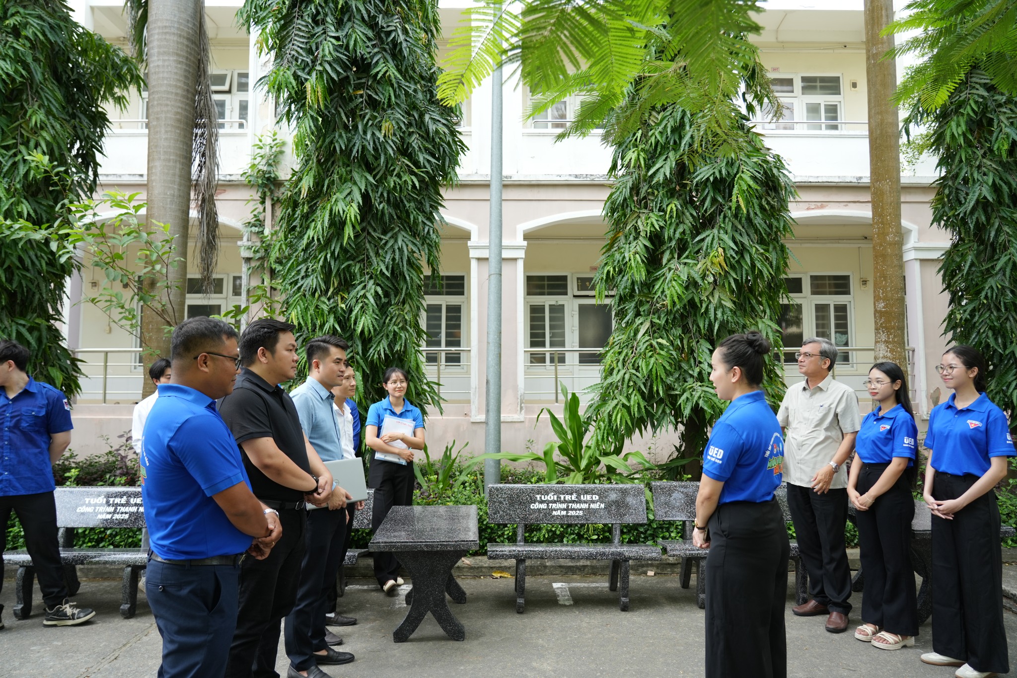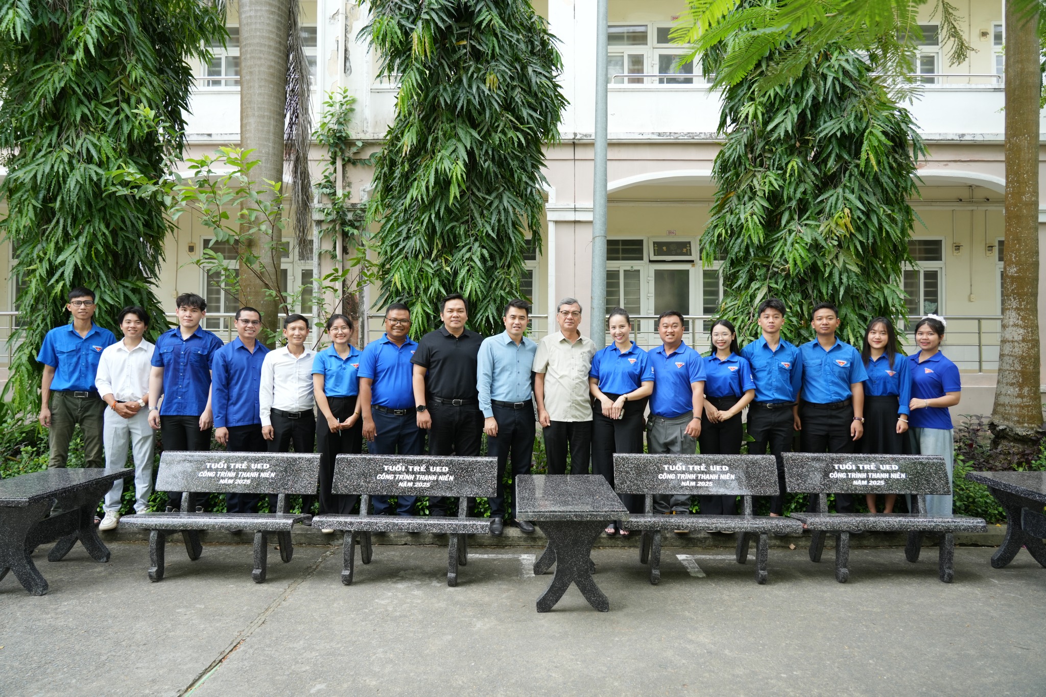 Với thông điệp “Cống hiến từ những điều giản dị”, vào ngày 29/6 Tuổi trẻ Trường Đại học Sư phạm – Đại học Đà Nẵng (UED) đã triển khai và trao tặng công trình thanh niên năm 2025 gồm 4 bộ bàn ghế đá tại khuôn viên Ký túc xá Nhà trường. Công trình không chỉ góp phần cải thiện điều kiện sinh hoạt, mà còn mở ra một không gian học tập gần gũi, hiệu quả cho sinh viên nội trú.